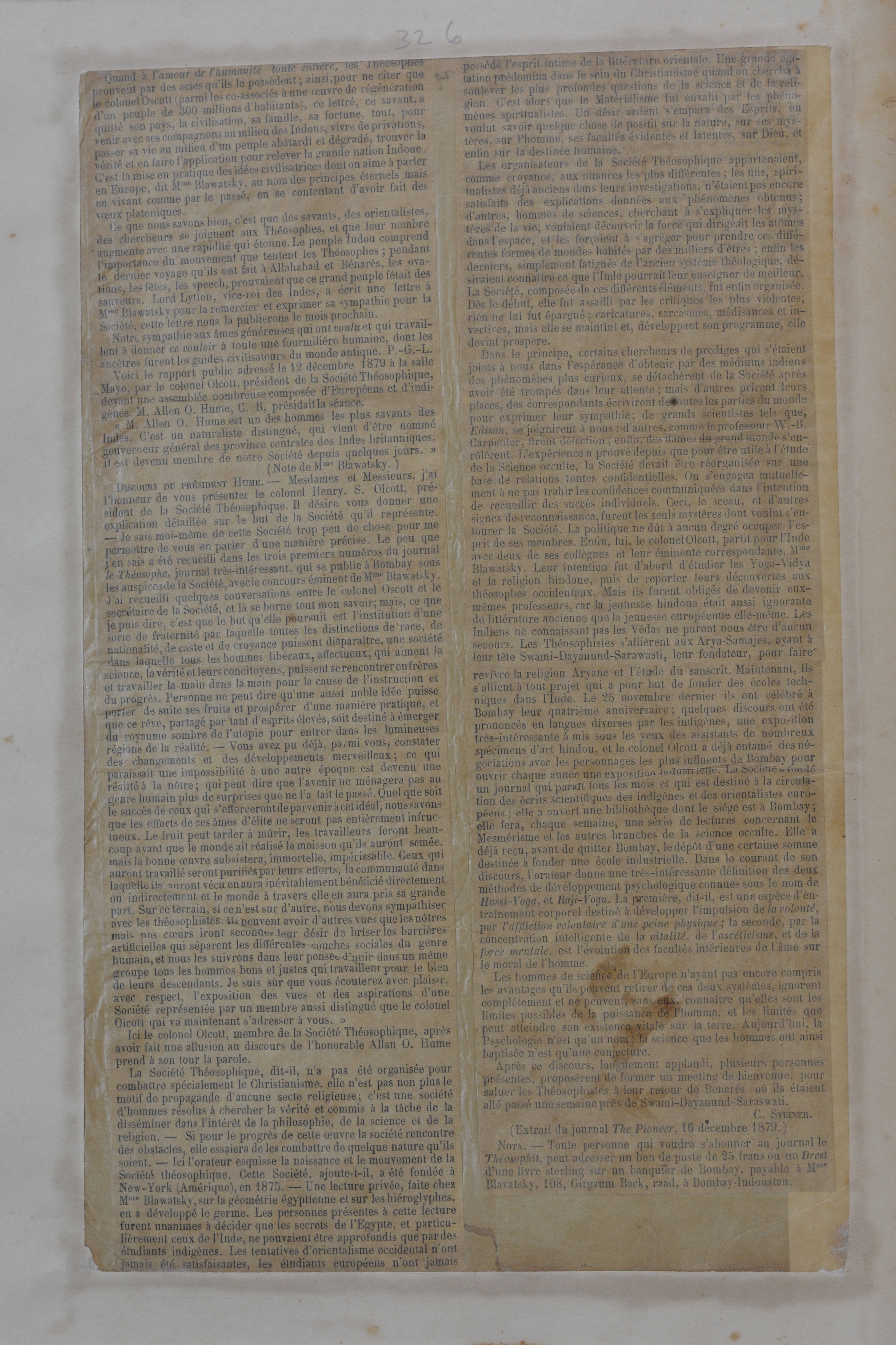 This file is a photo-copy of the page from Blavatsky H.P. Scrapbooks.