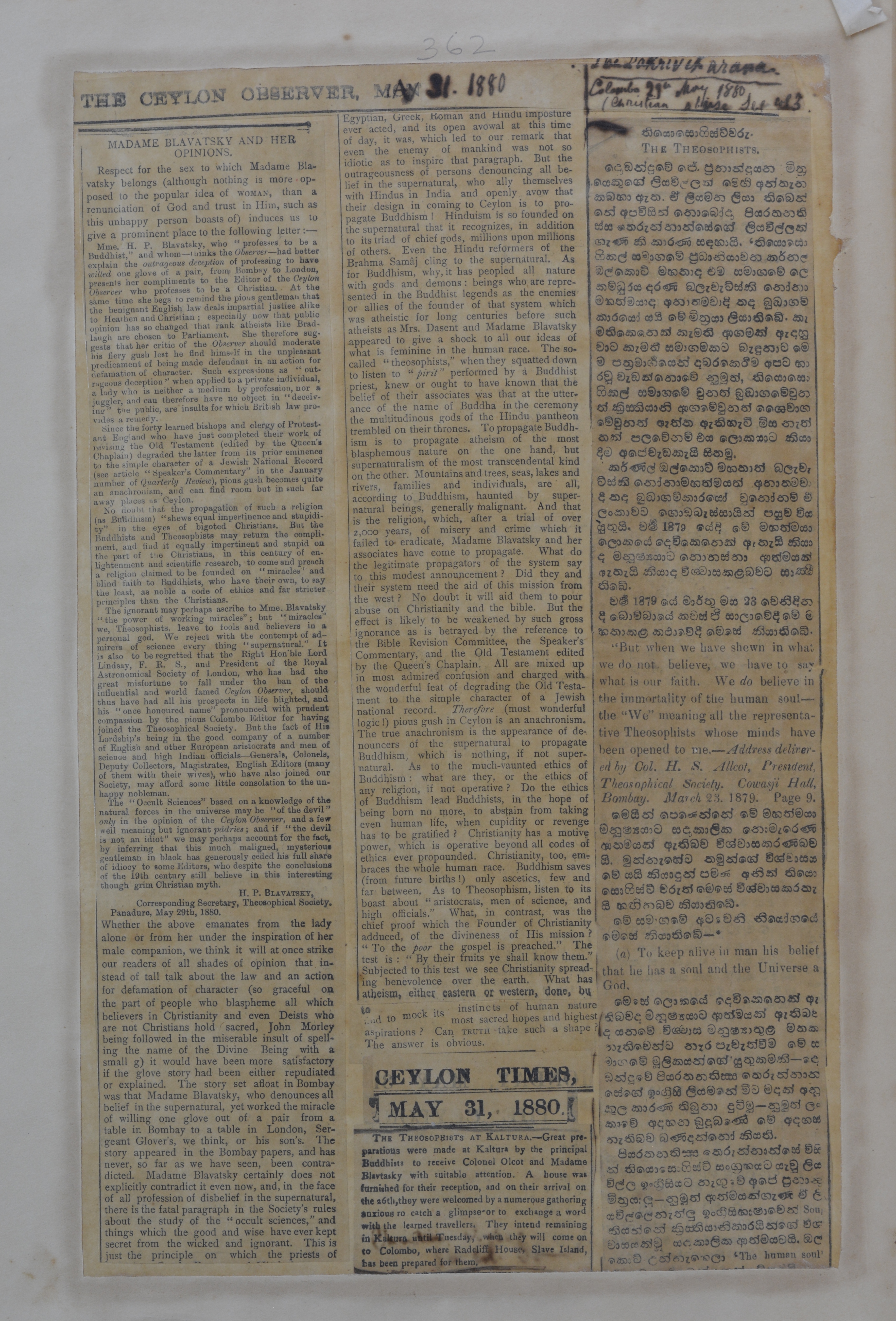 This file is a photo-copy of the page from Blavatsky H.P. Scrapbooks.