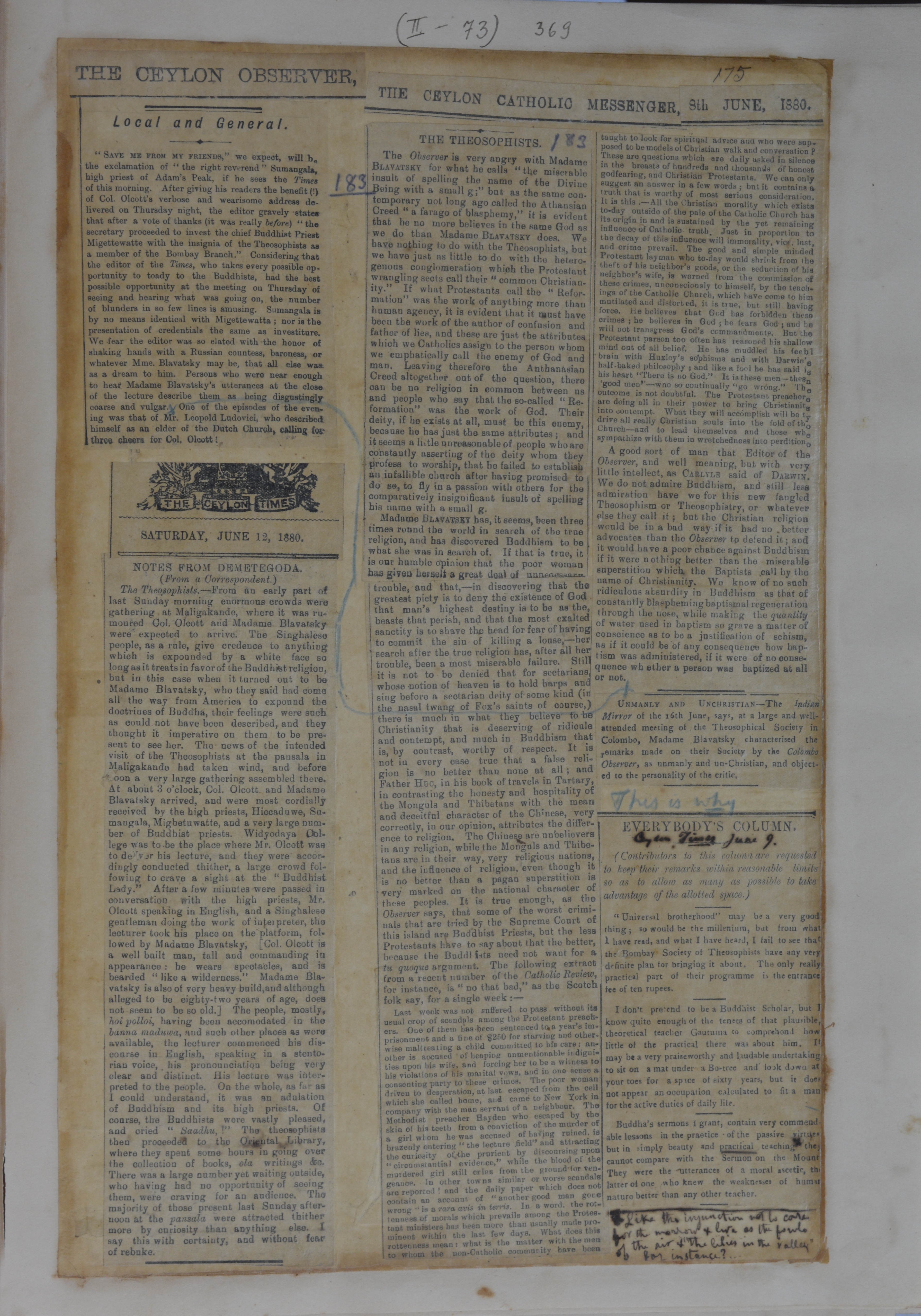 This file is a photo-copy of the page from Blavatsky H.P. Scrapbooks.