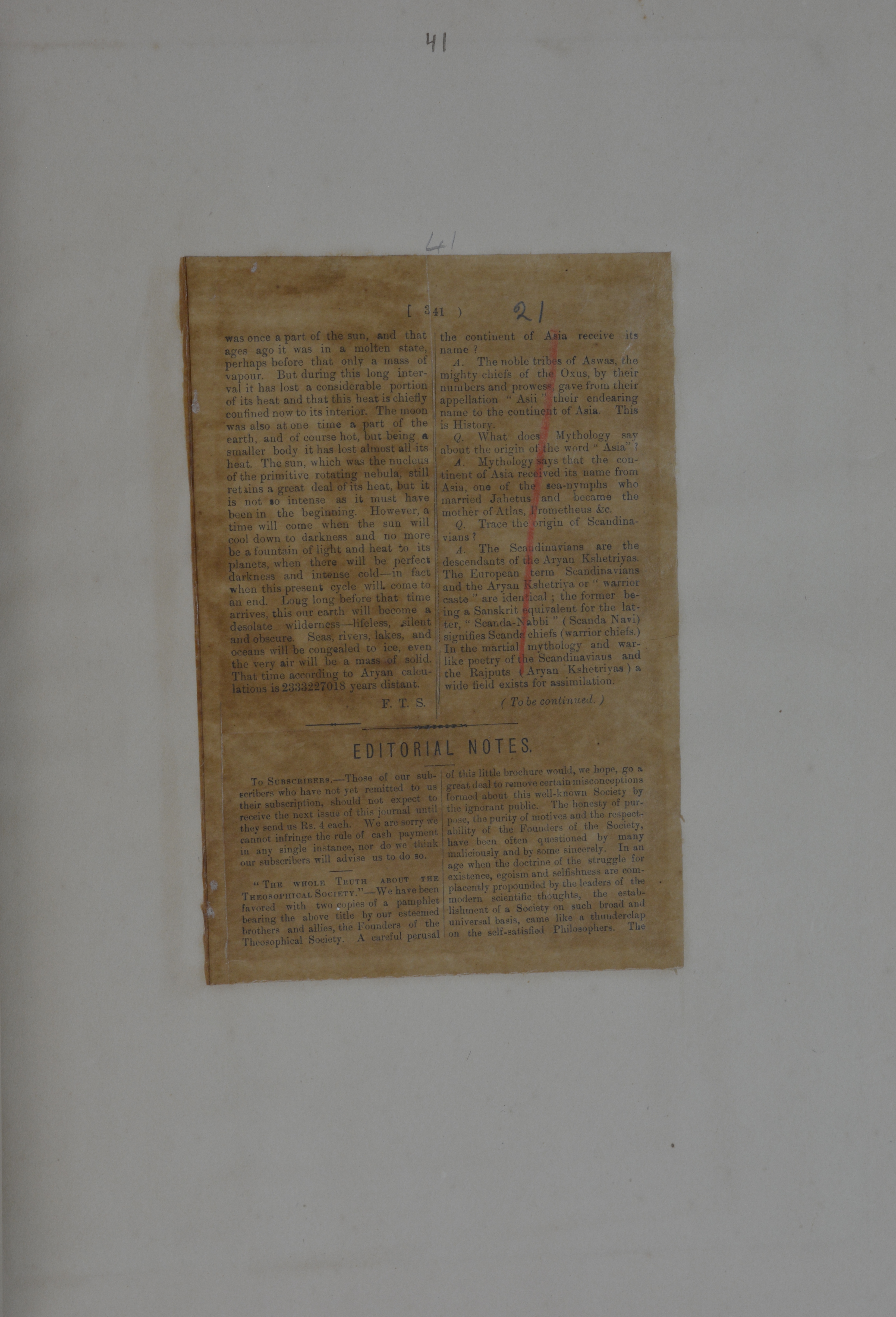 This file is a photo-copy of the page from Blavatsky H.P. Scrapbooks.