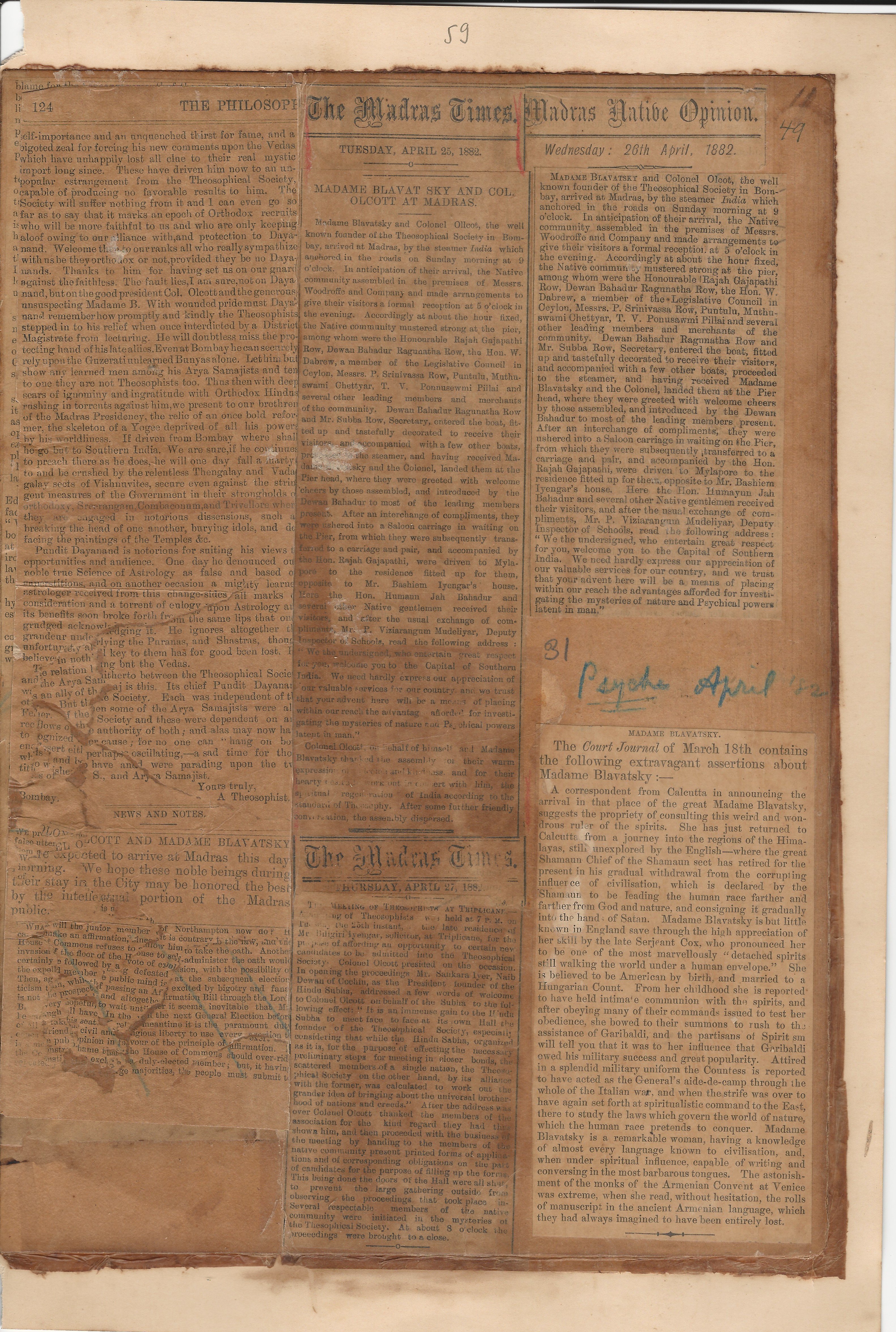 This file is a photo-copy of the page from Blavatsky H.P. Scrapbooks.
