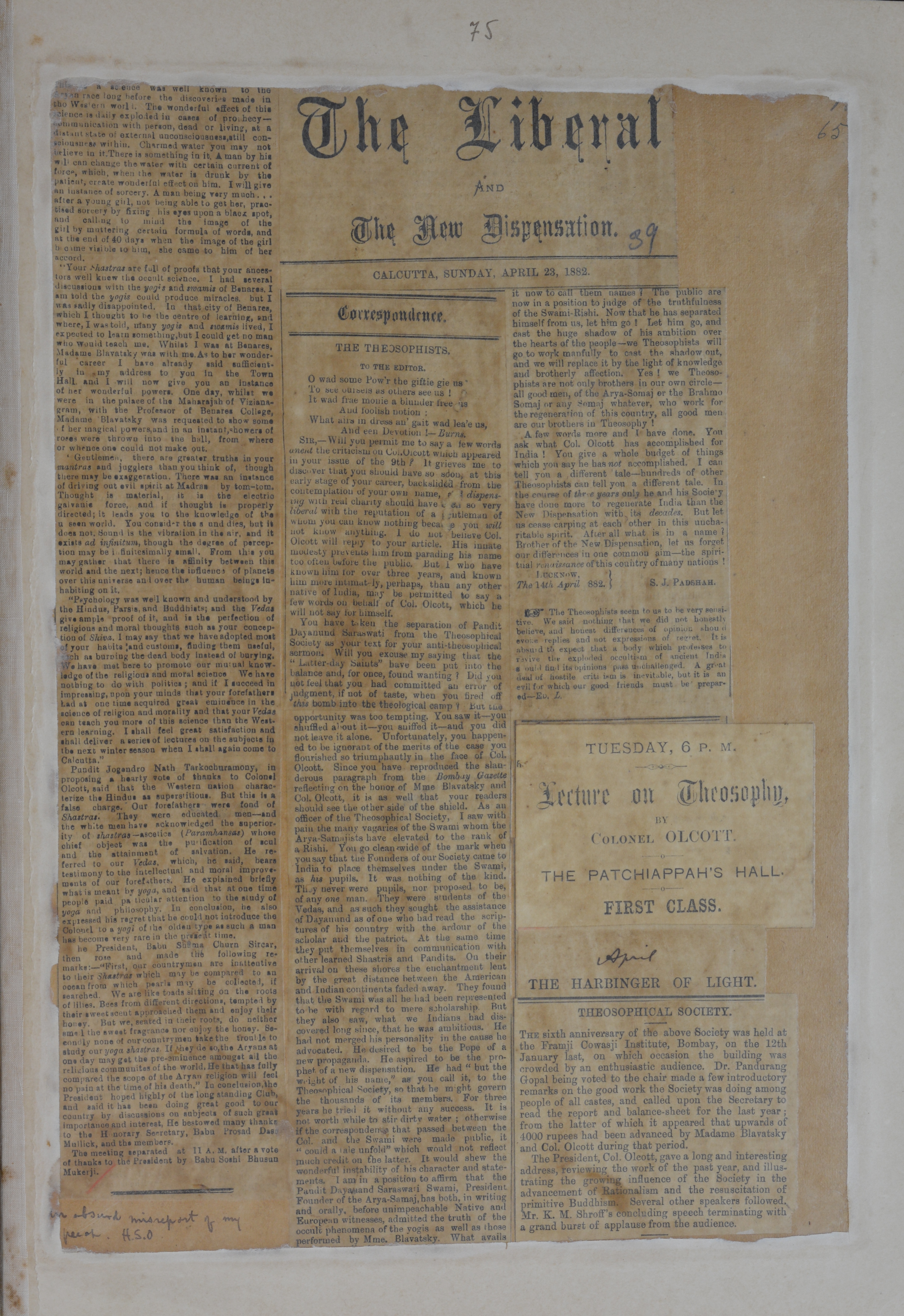 This file is a photo-copy of the page from Blavatsky H.P. Scrapbooks.