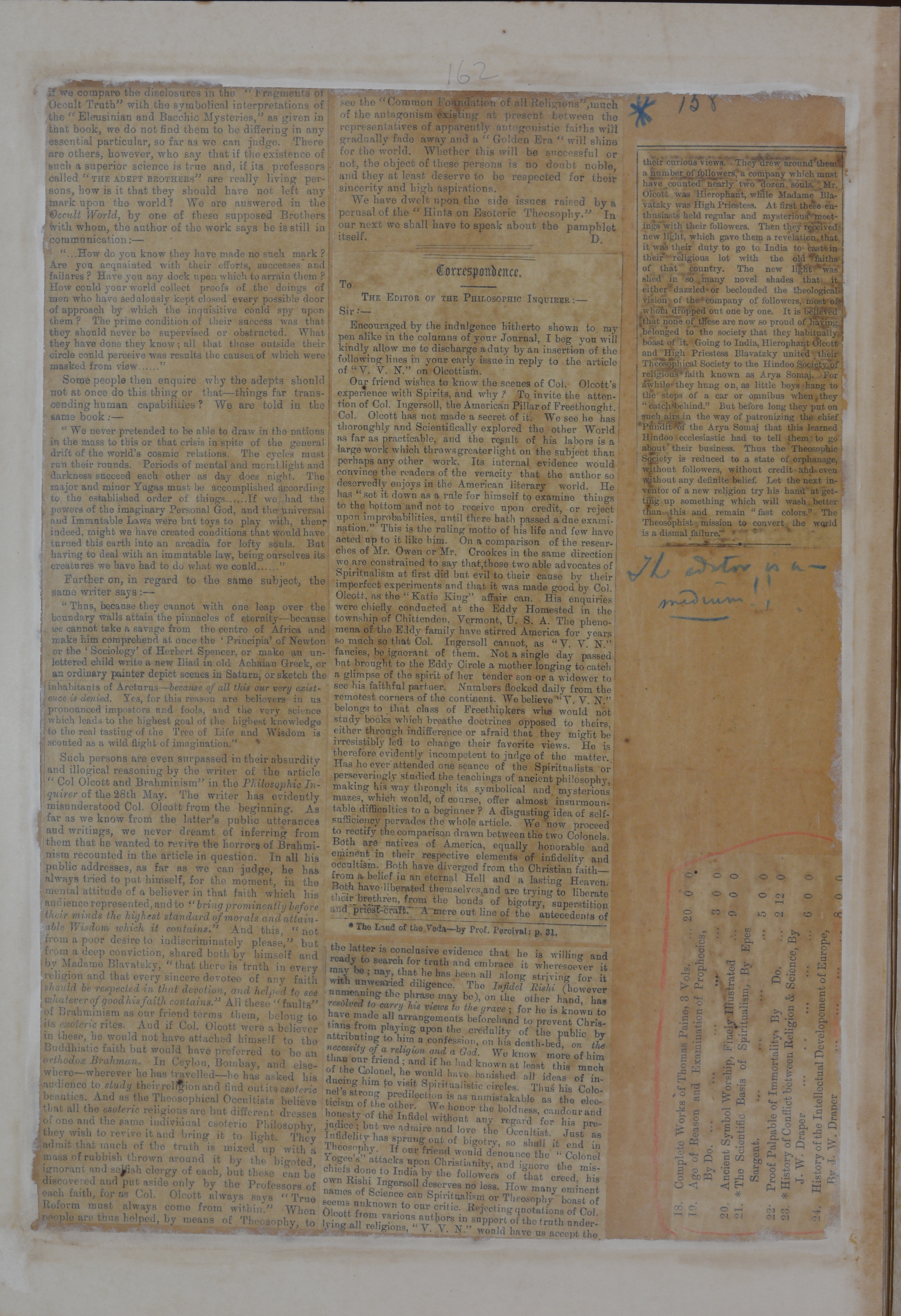 This file is a photo-copy of the page from Blavatsky H.P. Scrapbooks.