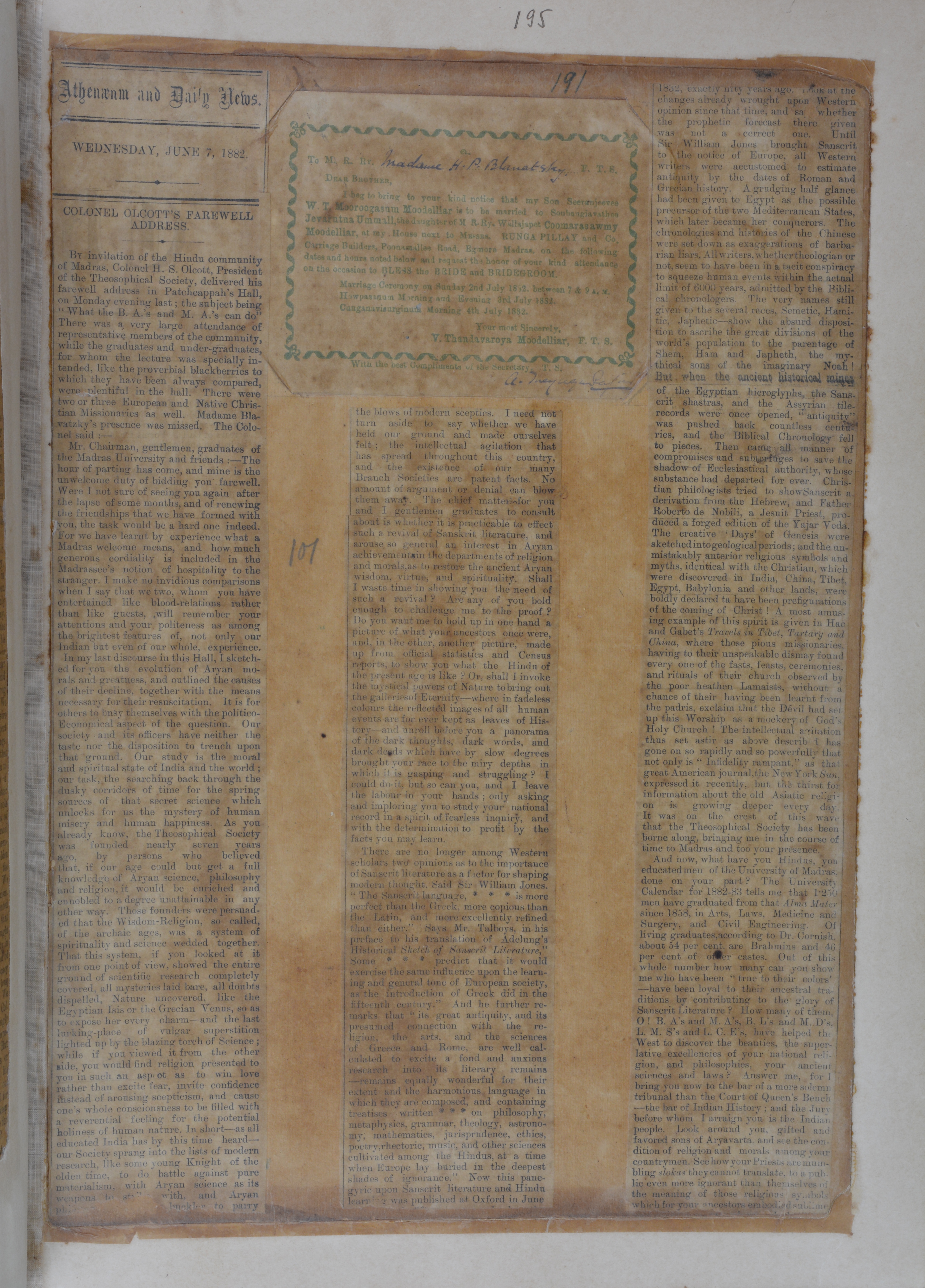 This file is a photo-copy of the page from Blavatsky H.P. Scrapbooks.